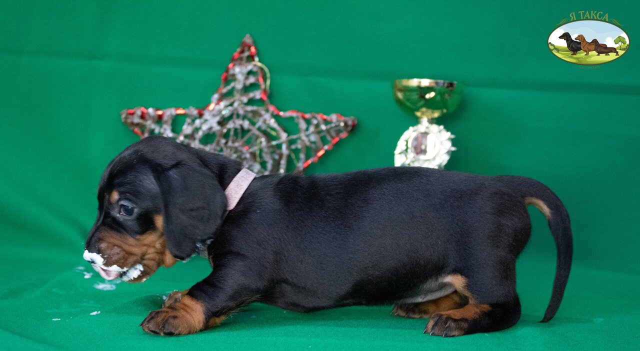 Бывают такие щенки, в которых с самого начала видишь «ту самую» искру. В месяц она уже демонстрирует отличную стать, уверенный характер и ту самую харизму, которая должна быть у продолжательницы традиций «Я Такса».