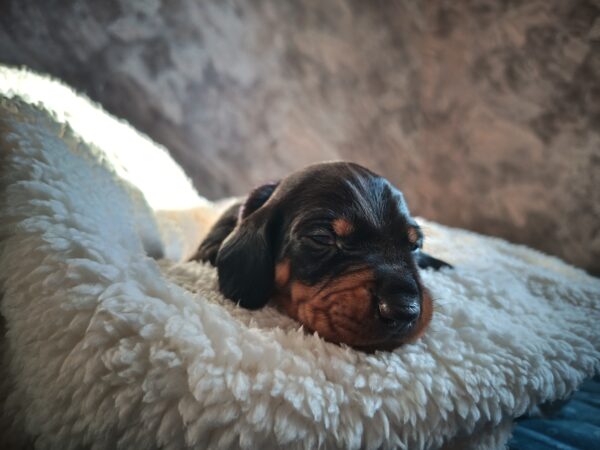 Щенки из помета «Д» рождены в феврале 2026 года. Это особенный для нас помет — результат тесного инбридинга, направленного на закрепление лучших качеств наших такс: великолепного экстерьера, крепкого костяка и уравновешенной психики.