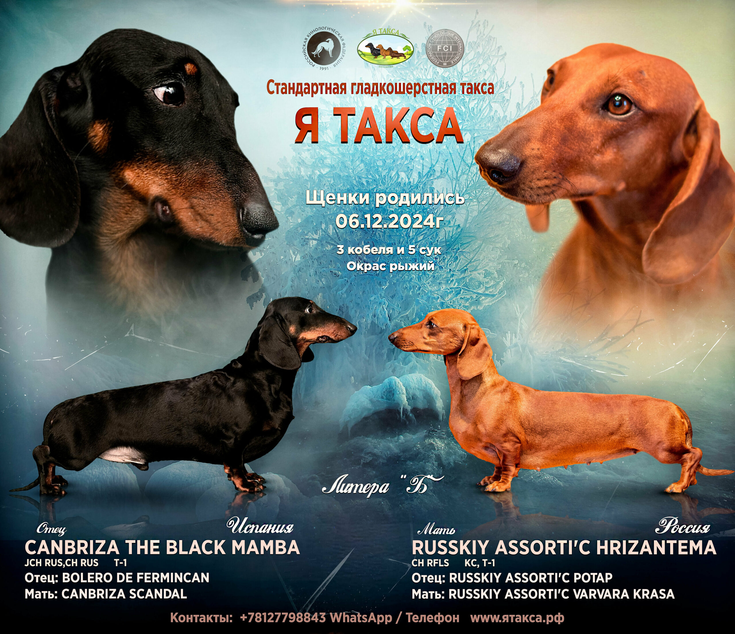 | Я Такса Борислав | BVZ 127 | Кобель | Уехал в Уфу |