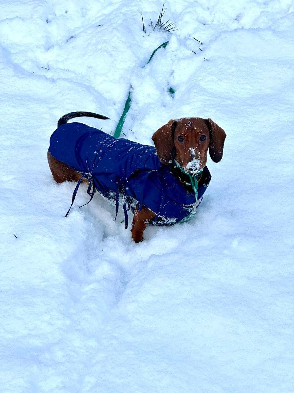 А с активных поисков таксы в сугробе! На фото наш выпускница Биби, которая доказывает: если ты такса, то любой сугроб — это отличная локация для игры в прятки.